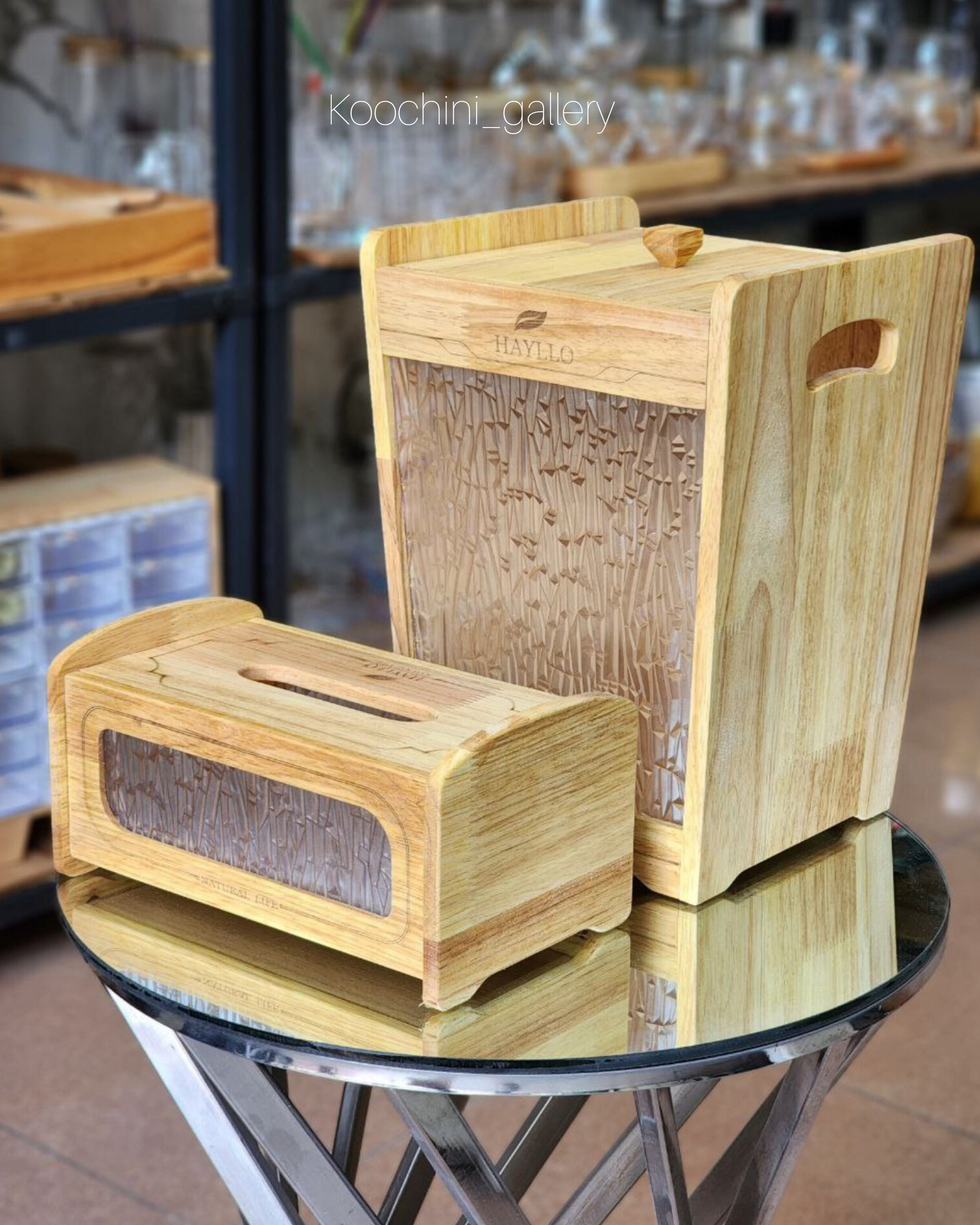 سطل و جا دستمال هایلو چوبی