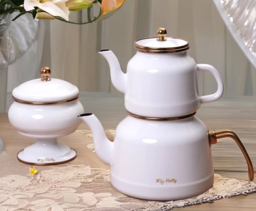 ست کتری و قوری از برند میس بتی miss Betty ساخت کشور ترکیه با حجم کتری ۲.۵ لیتر و حجم قوری ۱.۵ لیتر یکی از ترند ترین و زیبا ترین کتری و قوری های حال حاضر بازار ایران هستش که جنس لعابی کاملا ضخیم و ضد زنگ و ضد برگشت رنگ بودنش خیلی خاصش میکنه و شما میتونید این کتری و قوری رو با ضمانت اصالت و کیفیت از فروشگاه کوچینی خریداری کنید.