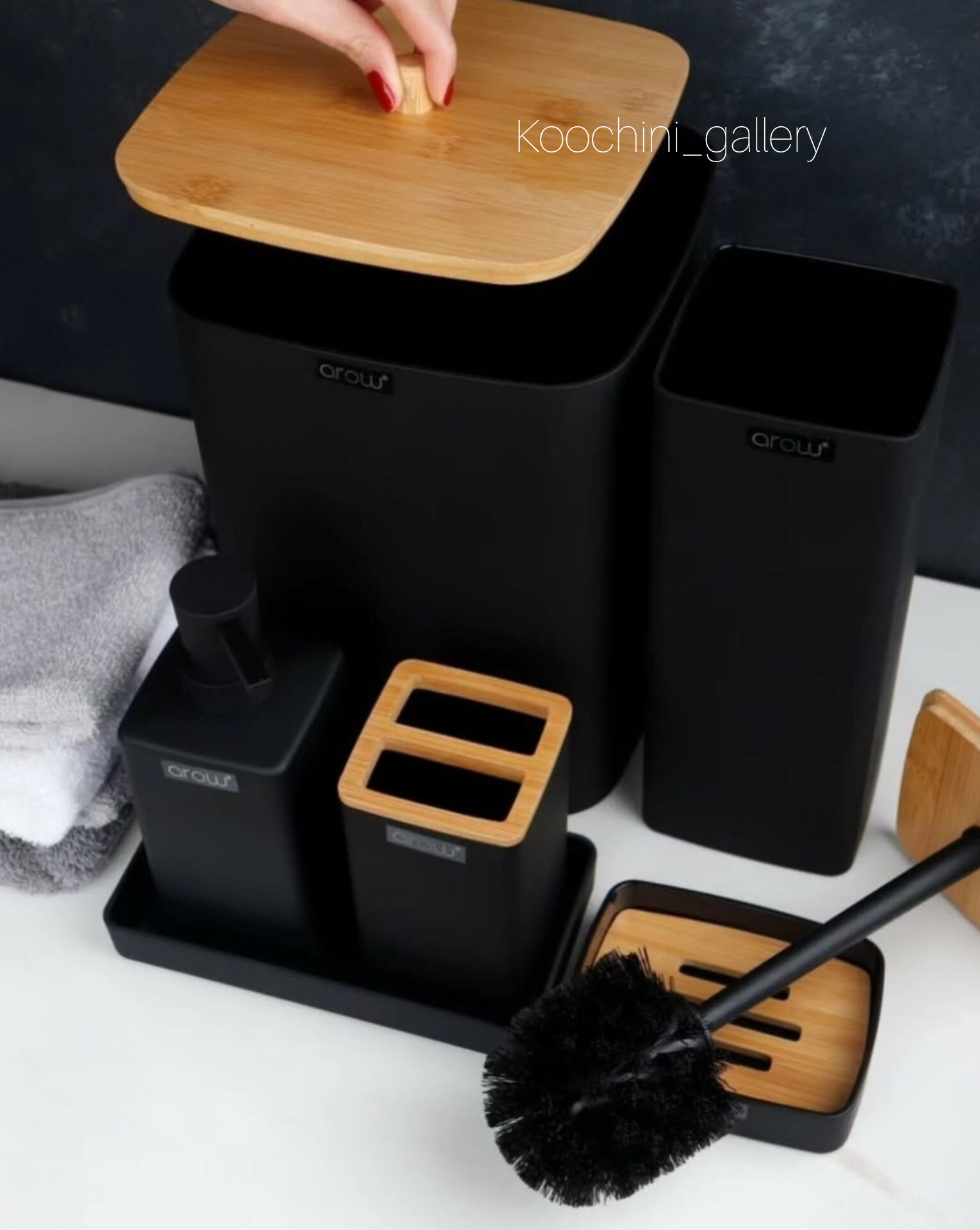 سطل : 20x20x24 سانتی متر - فرچه : 8.5x8.5x15 سانتی متر - جاصابونی : 11x11x3 سانتی متر - جامایع : 6x6x10 سانتی متر - جامسواکی : 7.5x7.5x10 سانتی متر - استند : 19x10x3 سانتی متر - باز شدن سطل به صورت پدالی