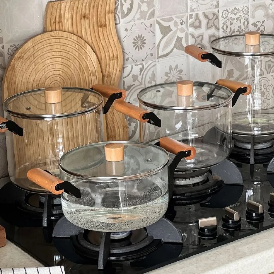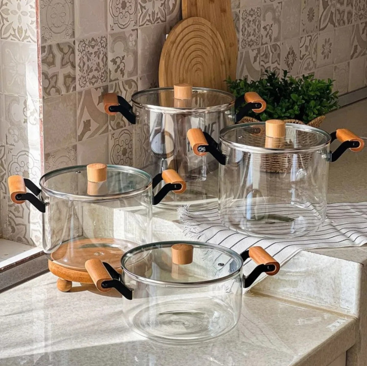 قابلمه پیرکس با جنس بدنه و درب شیشه پیرکس شفاف و ضخیم گزینه لوکسی برای پخت شعله مستقیم است - جنس دسته ها از فلز و چوب است که زیبایی دو چندانی به ظرف داده است - روی درب دارای سوراخ خروج بخار میباشد -این ظرف قابل استفاده روی انواع شعله ی مستقیم , داخل فر , روی اجاق برقی با صفحه المنتی و داخل فریزر است - نکته: (ظرف خالی از غذا را روی شعله رها نکنید و از وارد کردن شوک حرارتی سریع از سرد به گرم و برعکس خود داری نمایید)